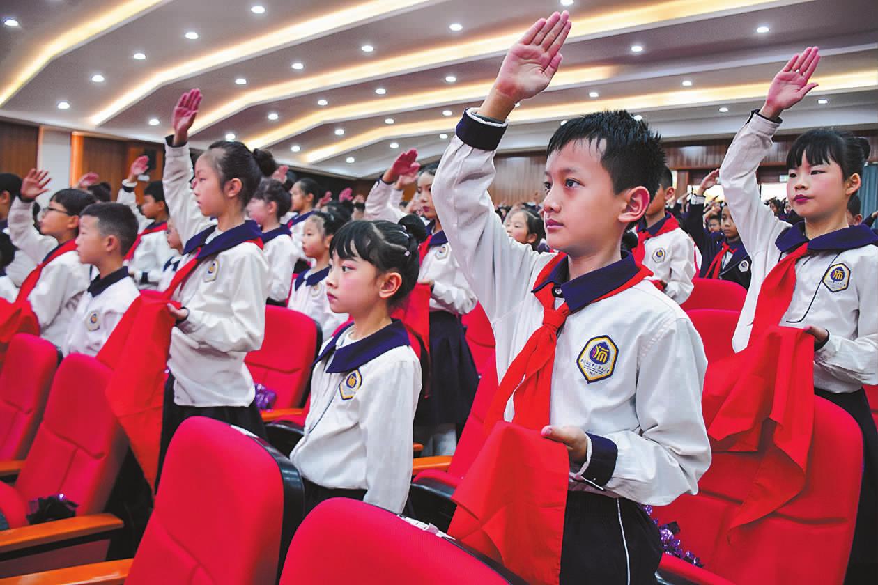 原标题:红领巾映朝阳 誓言铮铮向未来