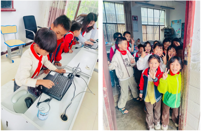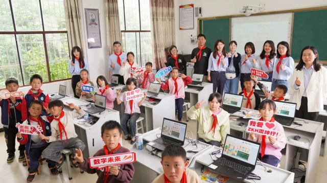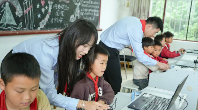 当城市里的孩子早已习惯用平板学习时,这里的许多学生甚至从未触摸过鼠标。震坤行志愿者们蹲在课桌旁,手把手教孩子们使用鼠标和键盘:“打‘登鹳雀楼’先按‘d-e-n-g’……对,就是这样!”当一行行拼音化作汉字出现在屏幕上时,教室里响起了此起彼伏的笑声。