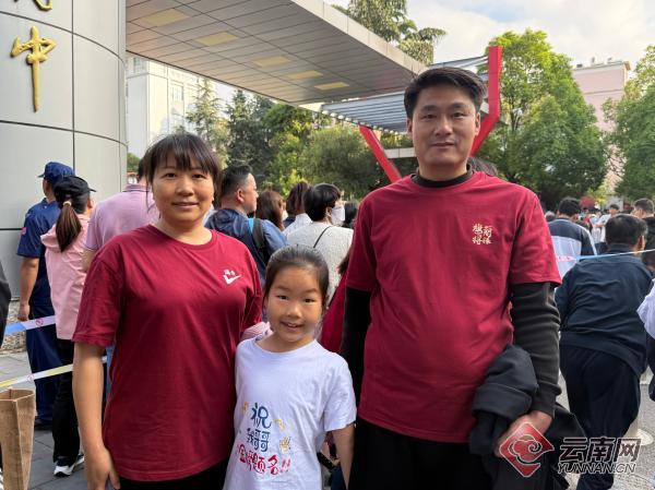 6月7日,在云师大附中考点,张女士一家三口着特定服装送考。记者 高祎祎 摄