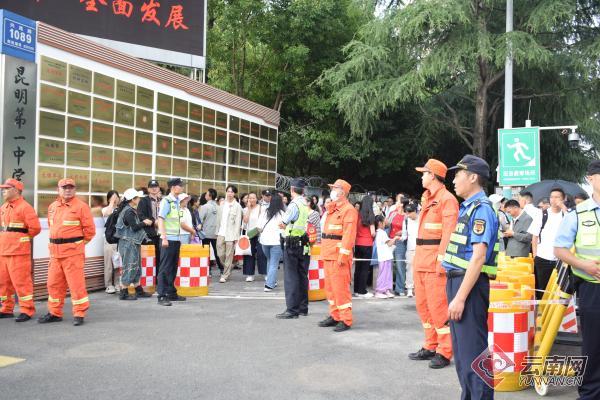 昆明市第一中学西山学校考点现场,公安、交警、消防等相关部门严阵以待,全力维护考点周边秩序,为高考保驾护航。记者 夏方海 摄