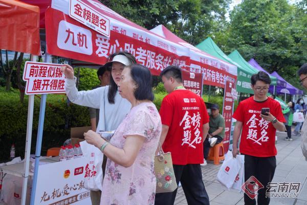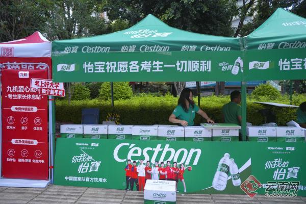 爱心送考企业在考点处搭设补给站 记者 陈思蒙 摄
