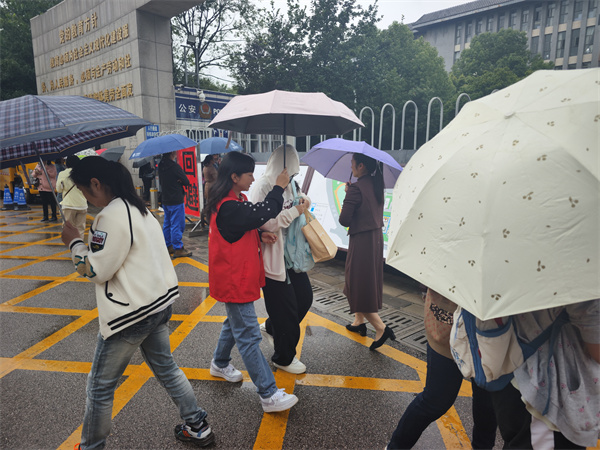 “同学别慌,我给你撑伞!”6月9日清晨,昆明突降暴雨,党员志愿者高举雨伞,一路护送忘带雨具的考生冲进昆明十四中考点。这样的画面并非个例——为应对高考期间的极端天气,普吉街道党工委、社区党委,联合普吉派出所、交警一大队、昆明荟聚、宜家商场等单位,组建了一支“红色护航队”。他们身着红马甲,顶着夏日高温和暴雨天,用身体组成的“人墙”引导考生分流,在倾盆大雨中撑伞搭建“爱心通道”,汗水与雨水在脸颊交织,却始终以“微笑指引”化解考生的紧张情绪。让“移动的红色堡垒”成为考场外最安心的坐标。