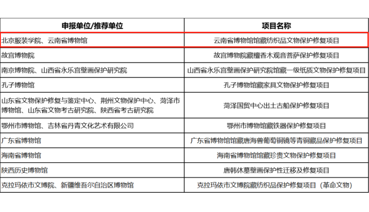 2024全国文物修复案例宣传展示活动十佳项目名单(按行政区划排序)