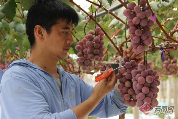 近日,红河哈尼族彝族自治州蒙自市雨过铺街道马房村委会的哈德逊葡萄庄园内,素有“葡萄界爱马仕”之称的100亩妮娜皇后鲜食葡萄已步入转色成熟期。颗颗果实如红宝石般缀满藤蔓,令人垂涎欲滴。工人们正穿梭于葡萄架间,小心翼翼地将饱满的果实剪下,直接从果园快递至消费者,保证果品的最佳新鲜度。