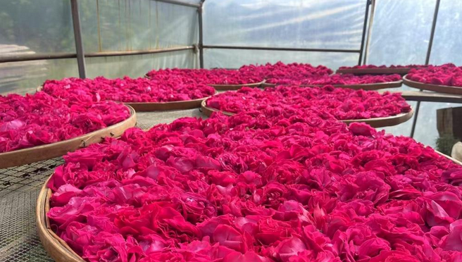 村庄旁,连片的藏玫瑰花田等待采收,空气中弥漫着玫瑰花香。“每年采收之际,都有游客前来赏花。藏玫瑰不仅可以卖出个好价钱,也可以‘看’出个好价钱。”巴珠村党总支书记余春林说。目前,全村种植藏玫瑰150余亩,村内已形成玫瑰花瓣加工产业链,可实现年加工玫瑰花100余吨,产品涵盖藏玫瑰原汁、玫瑰酒、玫瑰干花、藏玫瑰茶等。