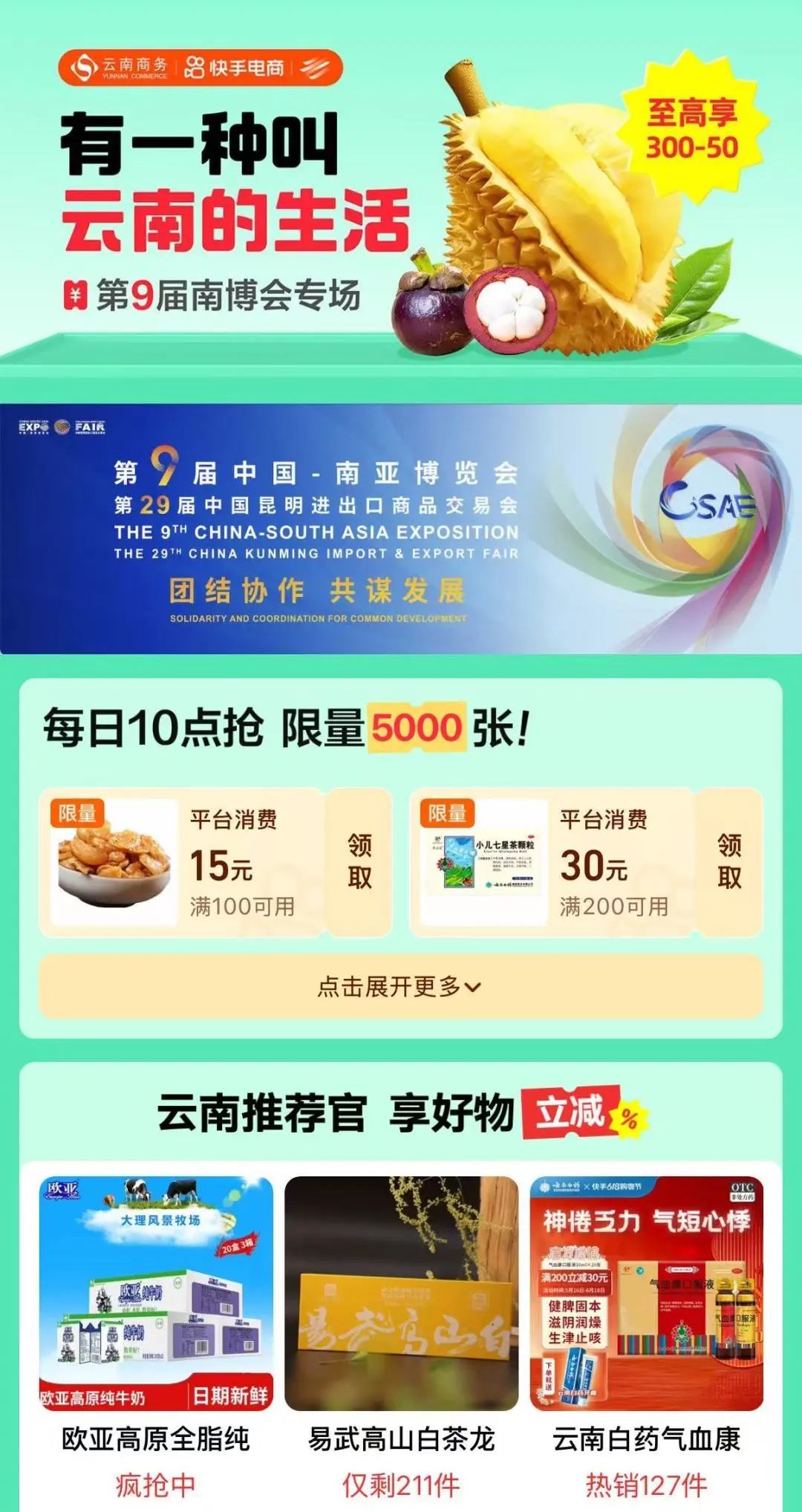 “有一种叫云南的生活·云品网购节”将固定每月19日举办,在淘宝、京东、抖音、快手、拼多多发放彩云电商消费券,集中推出云茶、云花、云咖、云果、云菌等当季最具代表性特色云品爆款,打造云南特色的电商产业带,推动云企卖云品、云品卖全国!