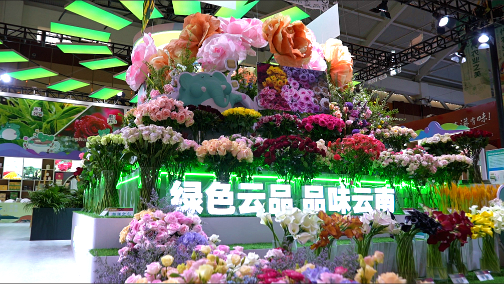 云花展区万紫千红,斗南鲜切花以浪漫姿态拥抱世界。