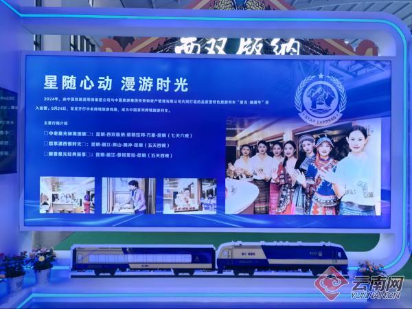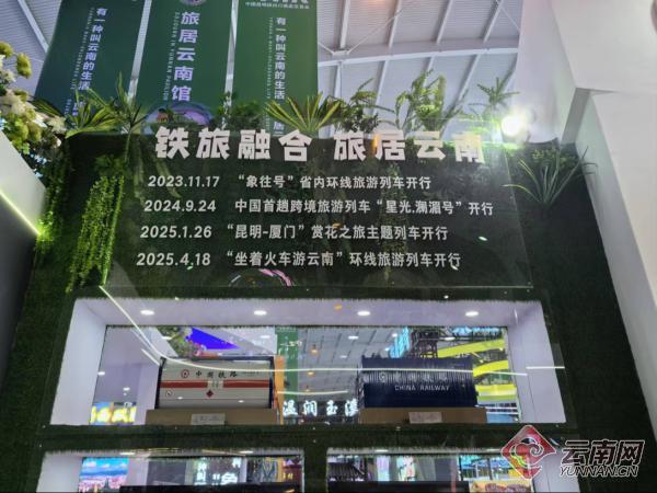 昆明铁路局以管内环线旅游列车、坐着火车游老挝、星光澜湄号、象往号、云南米轨旅游观光列车五条线路,生动展现云南铁路与旅游融合发展的丰硕成果,这些线路各具特色,吸引众多参观者驻足。