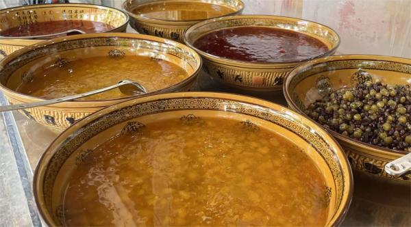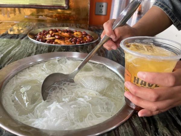 米凉虾的食用方式多样,通常搭配红糖水或蜂蜜水,也可根据个人口味添加水果、玫瑰等配料。冰镇后的糖水裹住米香,甜味轻盈而不喧宾夺主,添一勺玫瑰酱或几粒时令果丁,层次更显丰富。云南人常将米凉虾与木瓜水搭配,碎冰碰撞瓷碗的叮咚声里,暑气悄然消散,这种无需繁复修饰的滋味,是市井生活中最踏实的慰藉。