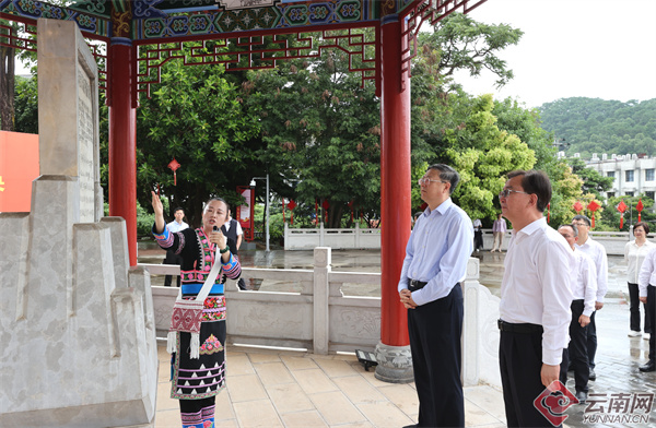 两地同志一同参观普洱民族团结誓词碑。记者 周灿 摄