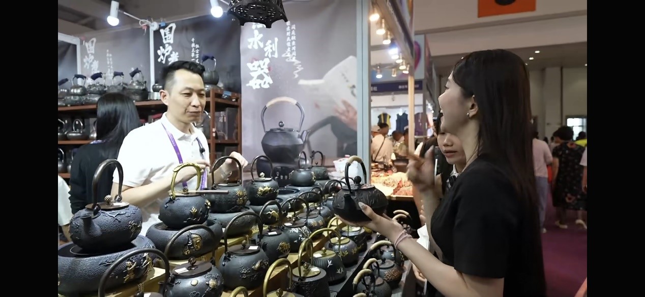 随后,我们走进了境外馆。馆内有32个国家及中国港澳台地区的企业参展,展品涵盖家居产品、手工艺品、时尚饰品、特色食品等,越南网红主播阿玲带网友了解了台湾非遗茶壶的历史、品鉴了台湾小吃,也欣赏了台湾钢琴。