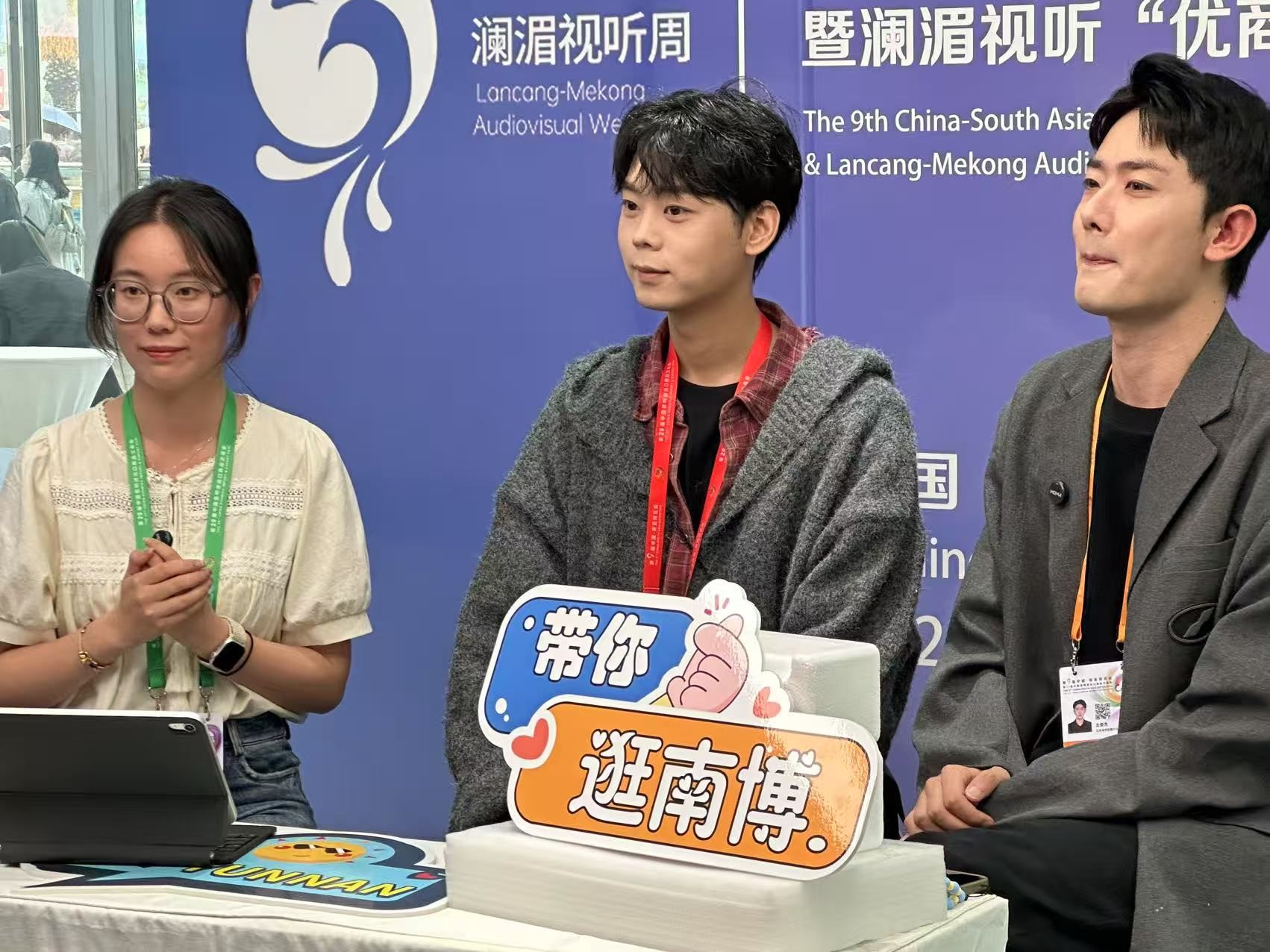 下午的直播间内邀请到中越合拍文旅微短剧《戏门》剧组的两位演员进行对话。两位主演分享了《戏门》创作背后的故事,也分享了自己来到云南的印象和感受。