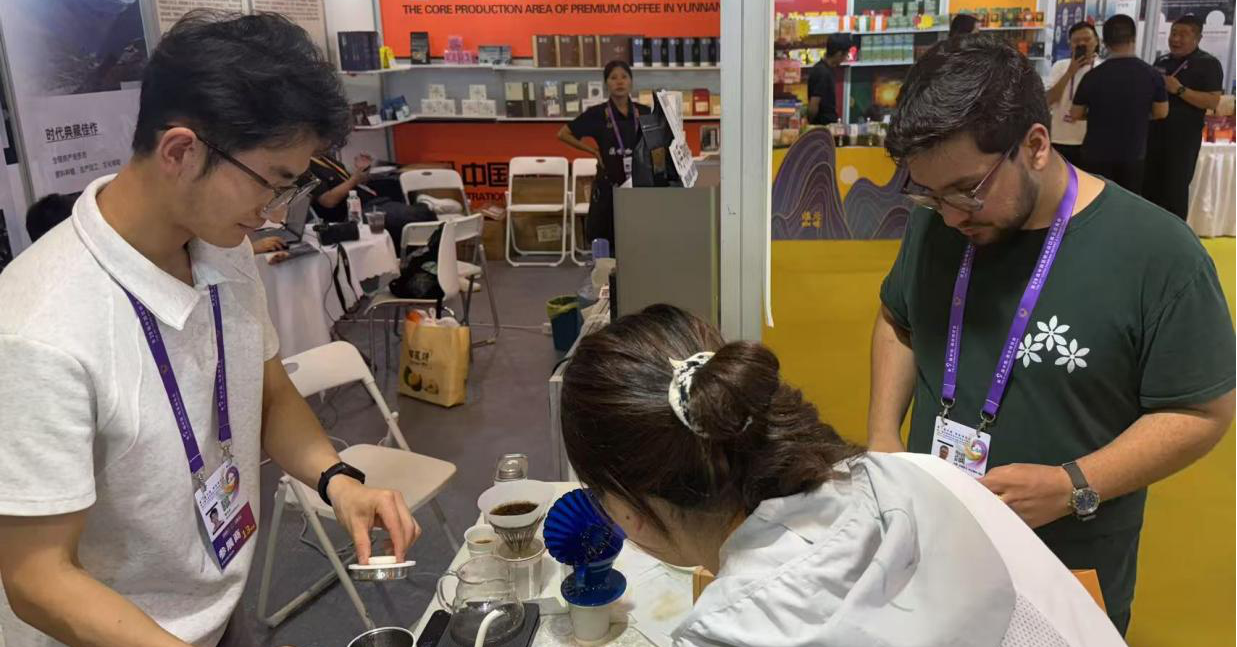 巴拿马学员Adrian Santiago Villarreal(中文名:阿亮)和Elisa Yau Qiu(中文名:邱玉珍)与媒体记者分享了参加南博会的感受:“我们因援外培训与南博会结缘。对于我们来说,南博会不仅是一个展示巴拿马咖啡的平台,更是一次深入了解中国与南亚市场、拓展国际交流的重要机会。”展会期间,他们与来自国内外的咖啡专业人士、进口商、消费者进行了深入交流,也亲身感受到中国在咖啡产业链各环节的活力与潜力。阿亮曾多次获得巴拿马高级咖啡赛事的冠军,本次南博会期间,他作为特邀嘉宾参加了南博会“在南博·品世界”咖啡分享活动,并将担任2025世界爱乐压大赛(中国赛区)昆明站评审嘉宾。