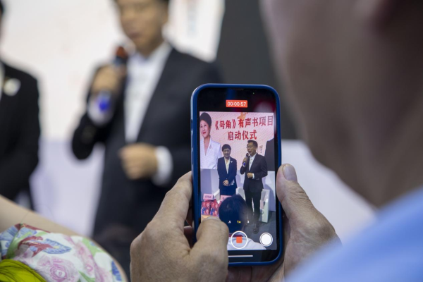 图博会首日,云南出版集团即展现了其在融合出版领域的强大实力。上午,晨光出版社主办的《号角》新书分享会成为全场焦点。该书以“纸质出版+AI插画+有声书”的全媒体形态,创新性地讲述了人民音乐家聂耳的故事。通过智能算法再现历史场景,加之表演艺术家张凯丽、张宏的倾情献声,一位年轻读者激动地表示:“这不仅仅是在读书,更像是在观看一部微型电影。我仿佛真的听到了聂耳吹响时代号角的声音,太震撼了!”