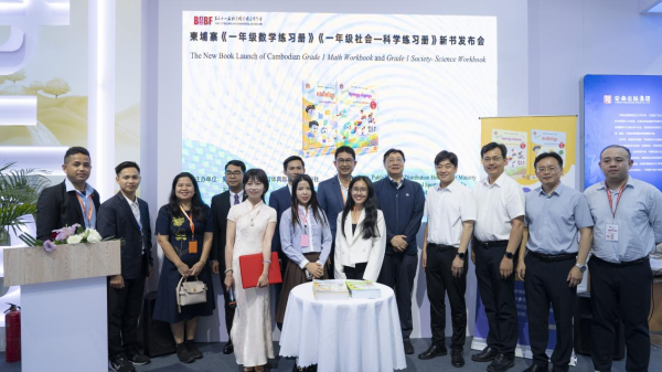 北京外国语大学中国文化走出去效果评估中心执行主任何明星在致辞时说:让中国基础教育的产品惠及东南亚地区,特别是惠及东南亚的青少年,这也是“一带一路”倡议的目标。希望柬埔寨相关机构不仅仅引进教材,还要引进教学、课程,双方通过合作做出一个样板,让更多的柬埔寨青少年得到严谨、扎实的基础教育训练,掌握理工科基础知识,尤其是数学思维的训练。让中柬两国源远流长的传统友谊,再次绽放新的光辉。