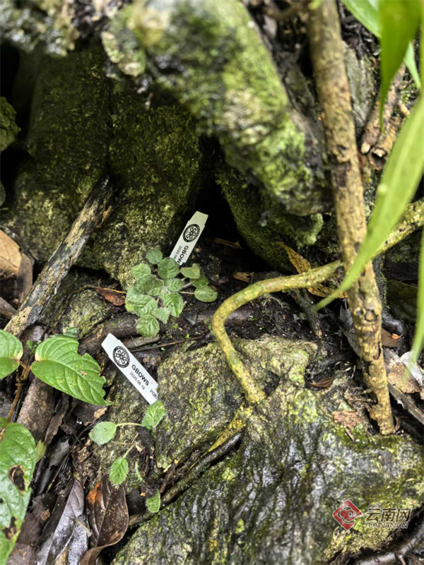 本次野外回归选取了两个地点。回归点一选择了最初发现该物种的蒙自天坑内,此处生境良好,外界干扰和威胁因素极小。回归点二为距离天坑约1公里的石灰岩林地阴湿岩壁上,该回归点紧邻农事生产道路,交通便利,利于回归后开展后续监测工作。