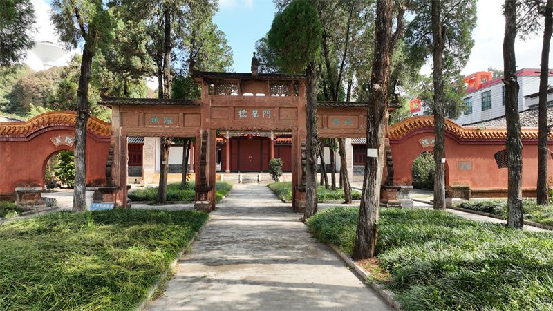 当夕阳给土掌房镀上金边,回到泸西县城寻访闹市中的静谧之地——泸西文庙。朱红大门后,四进院落次第展开。大成殿的琉璃瓦折射着暖光,棂星门石雕上的蟠龙在斑驳树影中仿佛游动起来。坐在泮池边上,听耳畔传来的读书声,古今相映,岁月在这里留下千年的文脉传承。