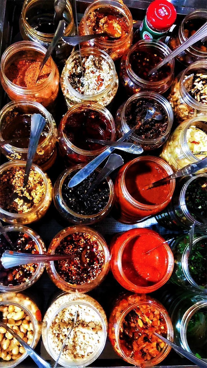 夜色初临时,循着焦香拐进小巷,炭火炉子上的洋芋烤得表皮酥裂。老干妈、火烧青椒、腌腐乳、韭菜花、折耳根……二十多种蘸料让你沉浸式感受洋芋中的“爱马仕”。像当地人一样把洋芋掰开,豪气地抹上爱吃的酱料,麻辣与甜香在口中爆开,夏夜的饕餮盛宴就此开始。