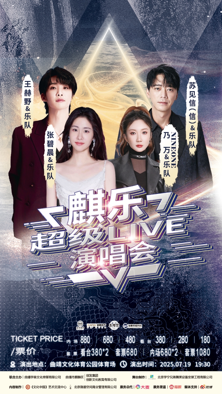 7月19日19:30,麒乐超级live演唱会携张碧晨、王赫野、苏见信、NINEONE 乃万将在曲靖市文化体育公园体育场震撼开唱,作为云南文旅与演艺深度融合的创新实践,它将为观众在盛夏时节,带来独属于云南的“微凉春风”中音乐与文化交融的独特魅力。