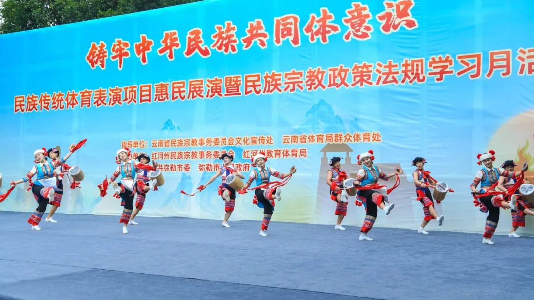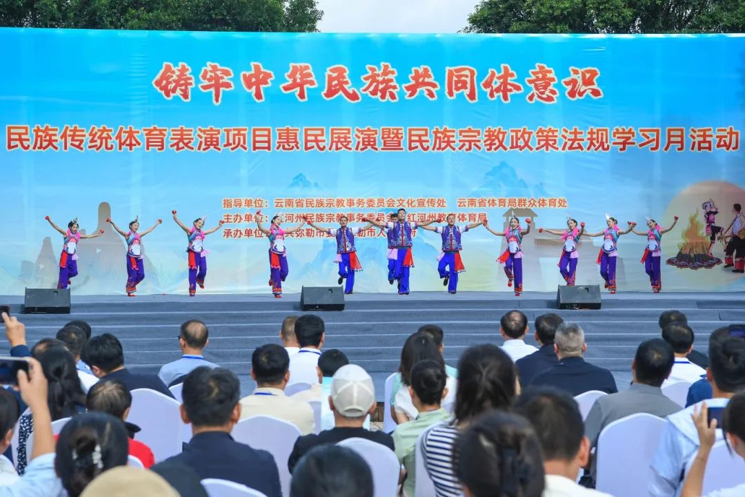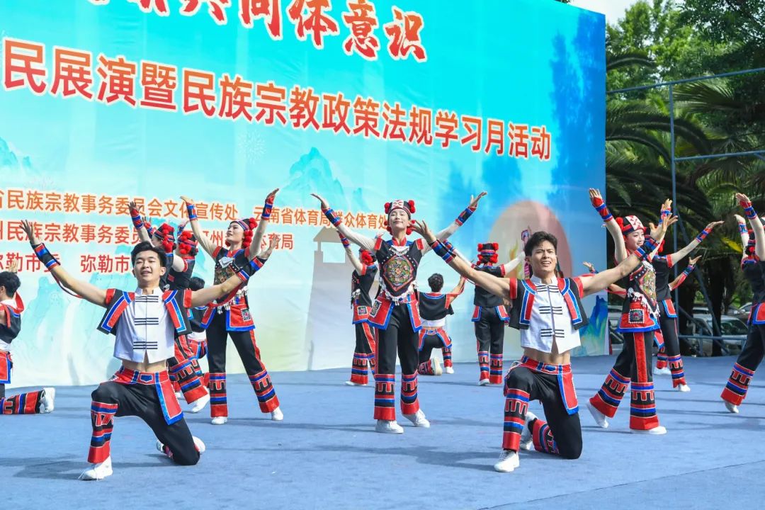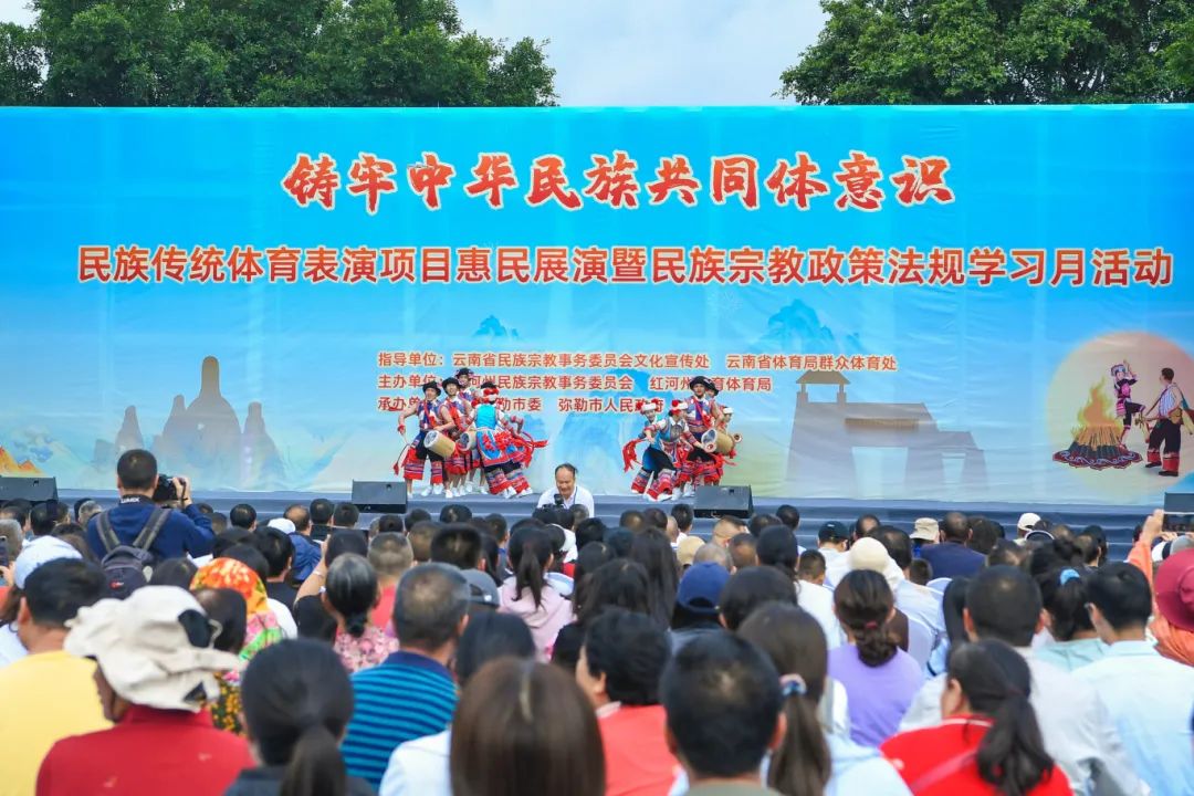 6月28日上午,云南省民族传统体育表演项目惠民展演暨民族宗教政策法规学习月活动,在弥勒市铸牢中华民族共同体意识广场(湖泉广场)举办。