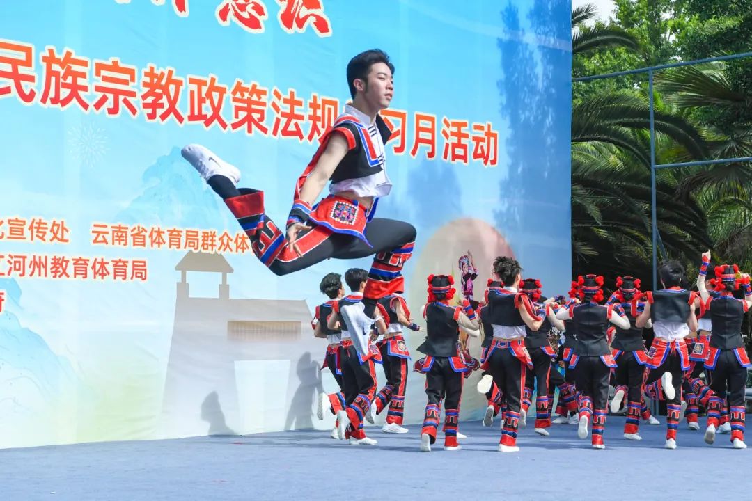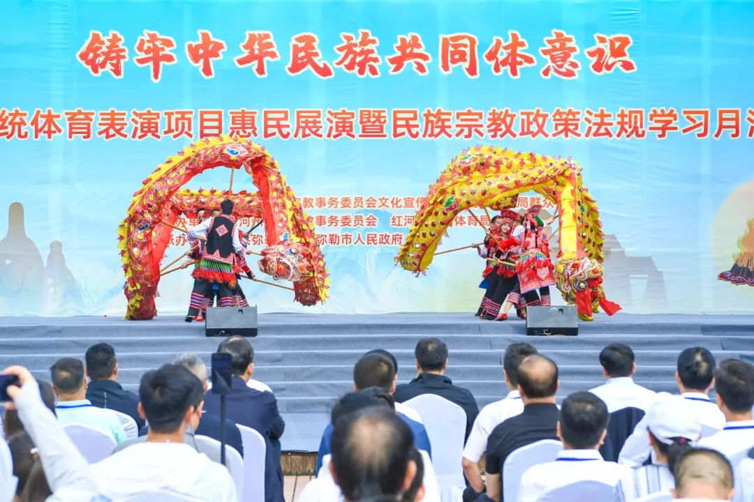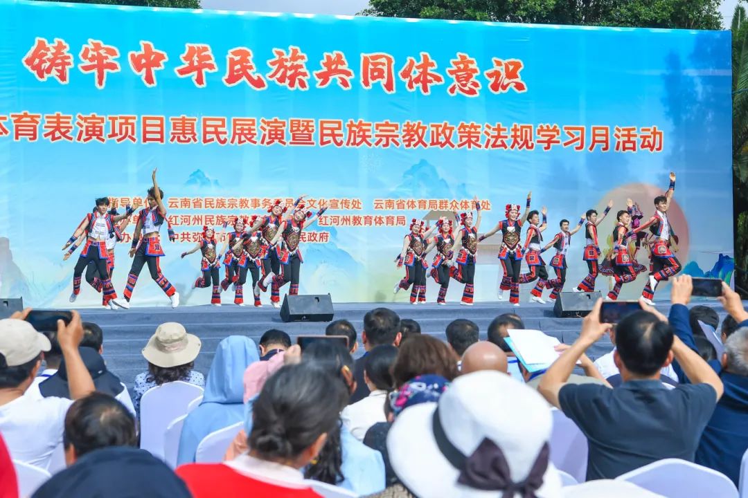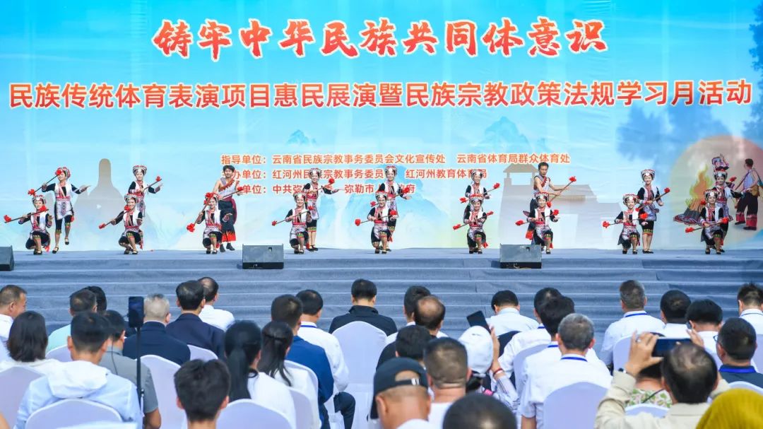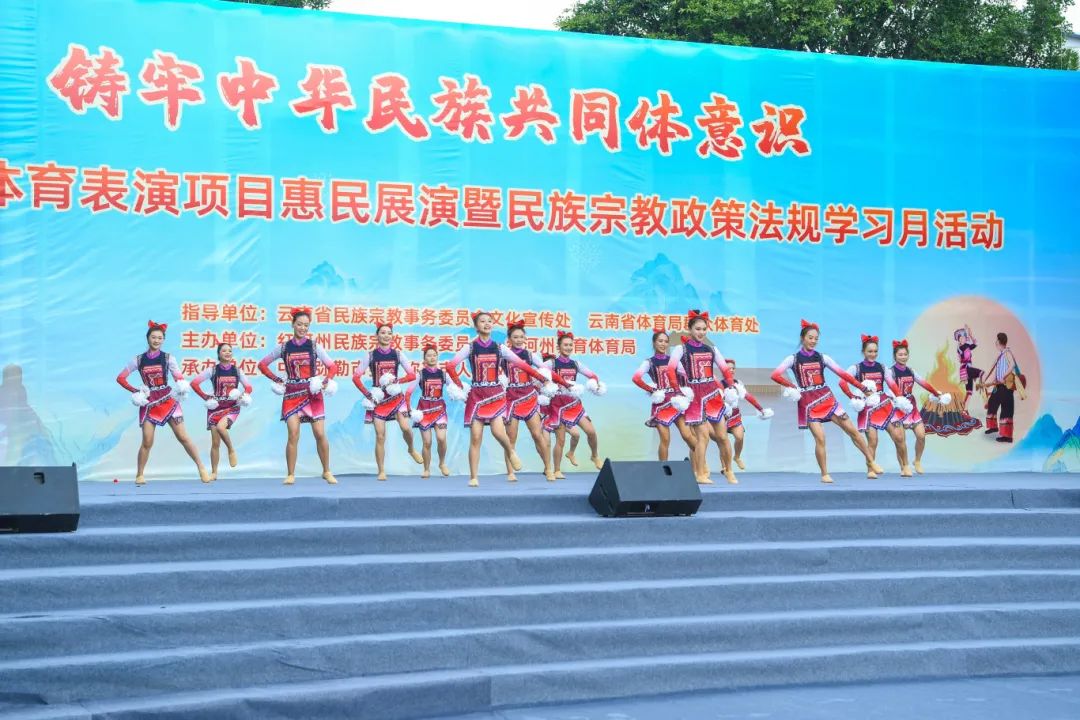 6月28日上午,云南省民族传统体育表演项目惠民展演暨民族宗教政策法规学习月活动,在弥勒市铸牢中华民族共同体意识广场(湖泉广场)举办。