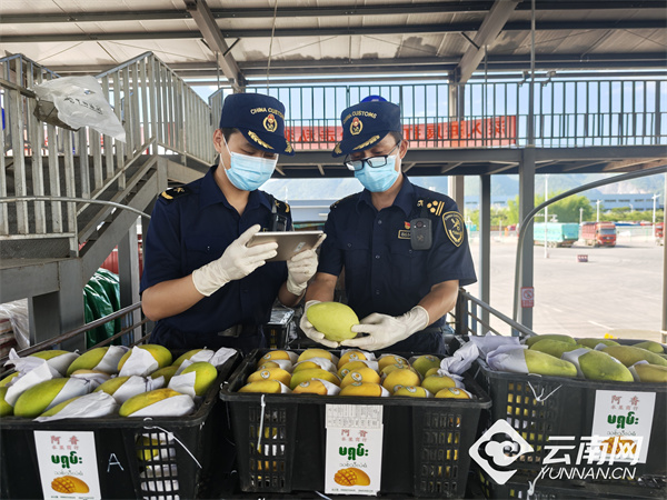 芒果属于鲜活易腐产品,对通关时效要求极高,为保障进口芒果安全高效通关,昆明海关所属畹町海关持续优化口岸通关流程,指导企业用好“提前申报+预约监管”“附条件提离”等通关模式,开辟“绿色通道”,实施作业现场卡口分流、双通道并行,提高现场通关效率,助力芒果抢“鲜”上市。同时,聚焦芒果病虫害、农药残留等检验检疫重点,实施“现场检疫+实验室联动鉴定”双轨检测,有效提升有害生物检出率,把好进口水果质量“安全关”。