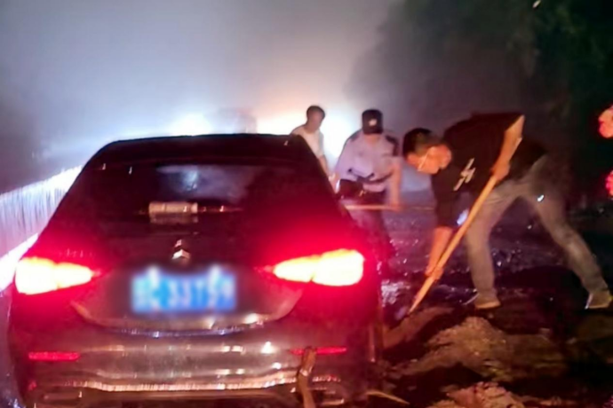 救援中,当众人合力帮助一辆受困车辆脱困时,负责警戒观察的“99后”辅警陈保利敏锐察觉到山洪轰鸣的声响愈发急促,他判断泥石流正朝着救援现场快速袭来。