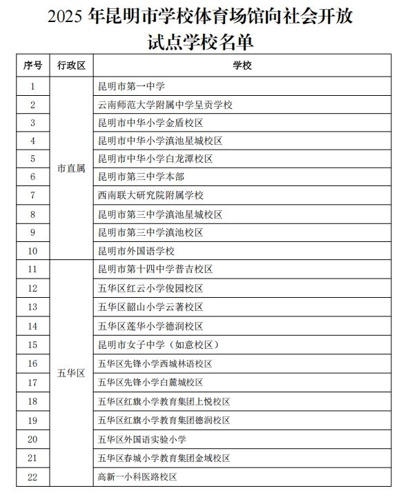近年来,随着生活水平的不断提高,市民对于体育健身的热情持续高涨。然而,公共体育场地设施的相对短缺,在一定程度上限制了市民的健身选择。在此背景下,昆明市积极探索体育资源共享模式,推动学校体育场地向社会开放成为重要突破口,旨在充分利用学校体育资源,缓解公共体育设施不足的压力,让更多市民能够便捷地参与体育锻炼,推动全民健身事业的蓬勃发展。此次开放的各所学校将根据实际情况,制定具体的开放时间和管理规定,确保场地开放工作安全、有序进行。