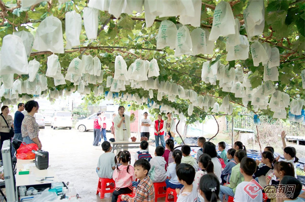 近日,以“宾果飘香 青进果园”为主题的共青团伙伴计划“团团活力圈”项目在大理白族自治州宾川县开展。在宾川县青年志愿者协会组织下,30余名青少年走进当地的远航植保果园基地,以科普与实践结合的形式,解锁葡萄种植的科技密码。