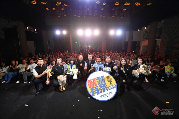 昆明市公安局新闻宣传处宣传科科长保航飞深有感触:“过去总觉得普法就得正襟危坐,讲得再卖力,大家不爱听也没用。现在换了脱口秀的路子,看着台下男女老少跟着段子记知识点,连小朋友都能奶声奶气喊出‘96110’,才明白有意思的表达比强硬的说教更有力量。”他至今记得有场演出,没抢到票的观众宁愿站在剧场门口听完整场,“这些热乎乎的反馈,比任何奖状都让我们觉得值。”