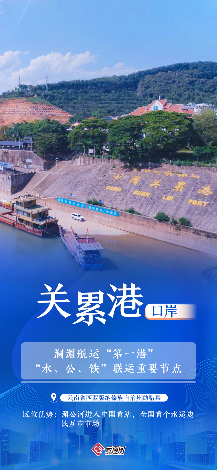 近年来,关累港口岸快速发展,为澜沧江—湄公河这条连接澜湄六国的“黄金水道”激发新动能。作为云南省唯一的国际水运港口,关累港口岸运量大、港口间点对点直达,且与昆曼公路、勐关高速公路、中老铁路互为补充、高效衔接。这里还有全国首个水运边民互市贸易市场,周边村寨前来办理申报业务的边民们络绎不绝,一辆辆满载着干果、木制工艺品等商品的货车正有序通关。