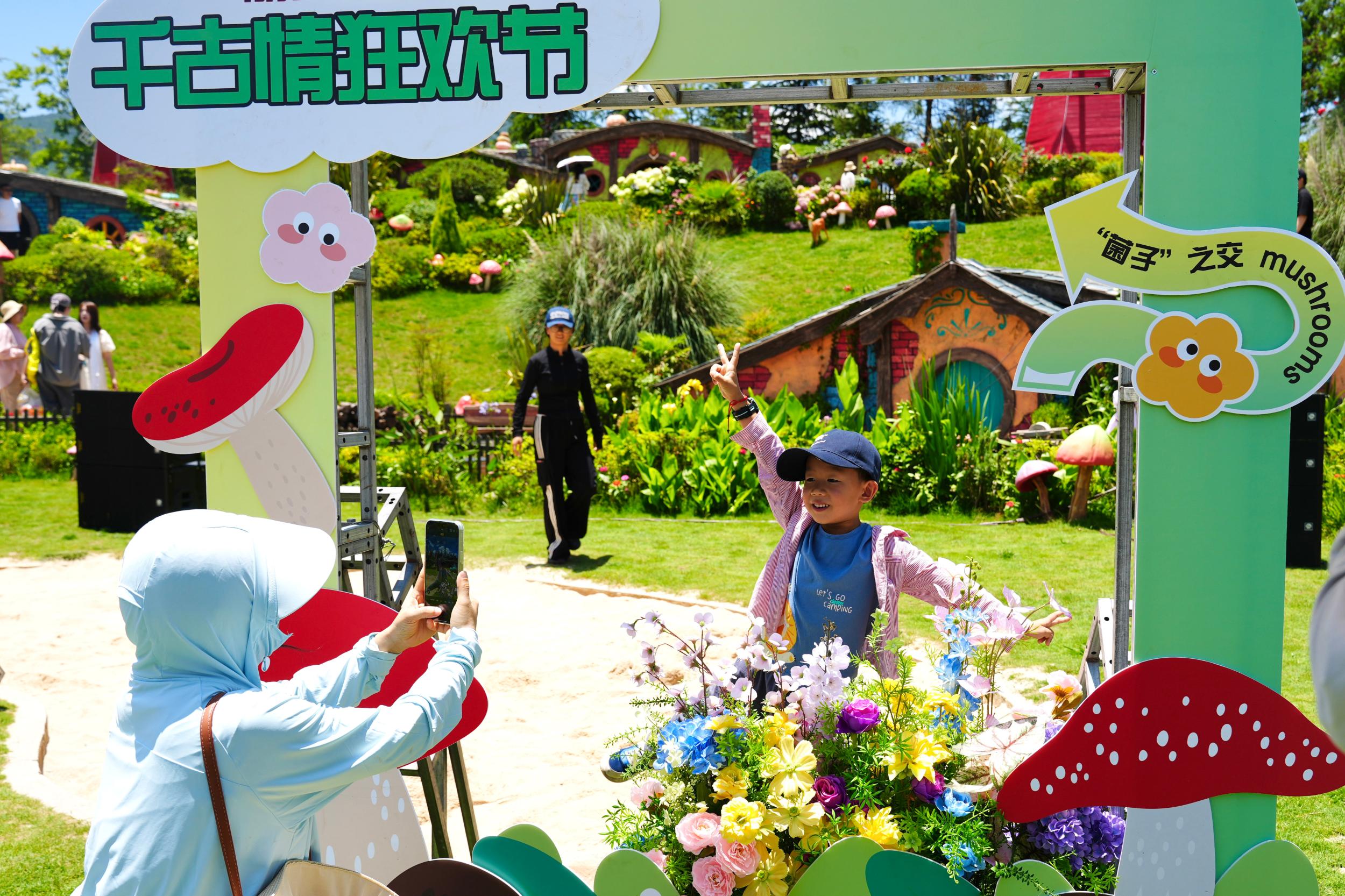 活动当日,丽江千古情景区以“蘑”力为主题,精心打造“奇幻菌菇宴”,吸引众多游客前来打卡。国际友人化身“蘑菇精灵队长”,携手云南野生菌精灵,以热情的姿态、欢快的节拍,穿梭于精灵谷,与游客互动。