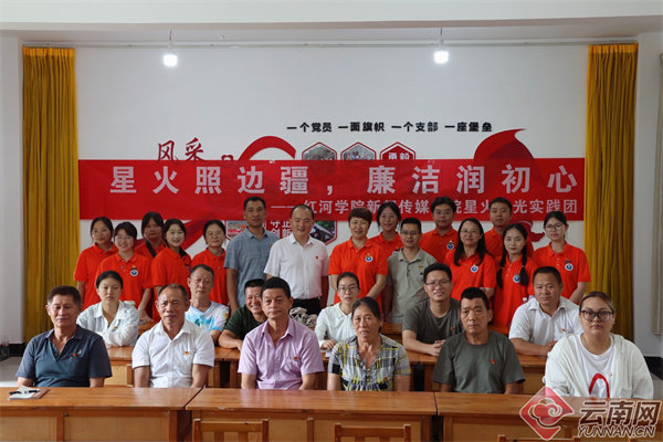 为深入传承西南联大“刚毅坚卓”的廉洁品格,传递边疆红色文化,7月16日,参加2025“多彩中国云南行”应用新闻传播融媒体实训营的红河学院新闻传媒学院“星火融光”志愿实践团,走进河口瑶族自治县八条半村与当地干部群众共赴一场“廉洁之约”。
