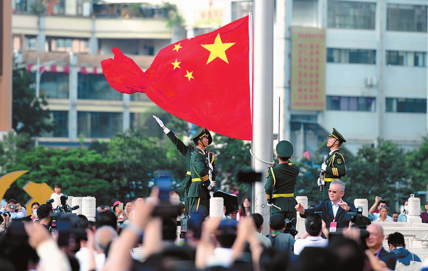 鲜艳的五星红旗在雄壮的国歌声中冉冉升起。本报记者 曾永洪 摄