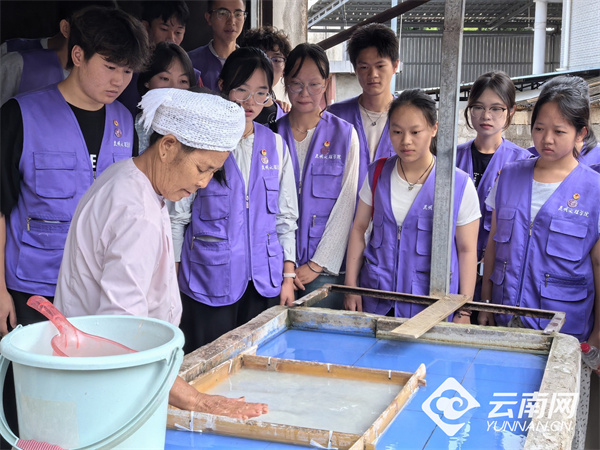 在纪念馆的交流分享环节,课堂气氛变得格外热烈。昆明文理学院大学生宣讲团的成员们,尝试用年轻人的视角和话语,生动诠释“抗战精神与当代青年责任”的内在联系,努力让理论知识“接地气”“入人心”。而“三下乡”社会实践团的成员们,则结合自己在乡村一线的亲身经历,分享如何将书本上的理论转化为服务基层、振兴乡村的实际行动。“在临沧永德县,跟随阿妈捶打构树皮、制作构皮纸,那份重复中的坚韧,让我想起在军营的摸爬滚打——不同的战场,同样的韧劲。”三下乡社会实践团成员潘云猛的分享赢得了热烈掌声。