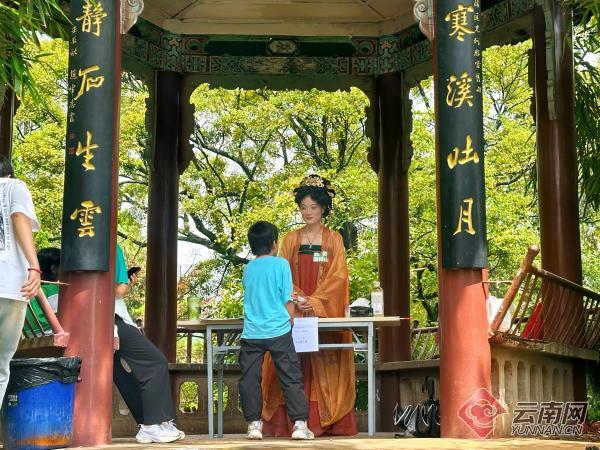 此次活动巧妙地将传统文化与生物多样性保护理念融合,吸引了不少游客参与其中。在历史悠久的月石亭内,手持题卷、身着典雅汉服的工作人员成了一道亮丽风景。不少娃娃跃跃欲试,争着与工作人员对诗。家长们表示,孩子在游戏中领略了传统文化的魅力,真正做到了寓教于乐。