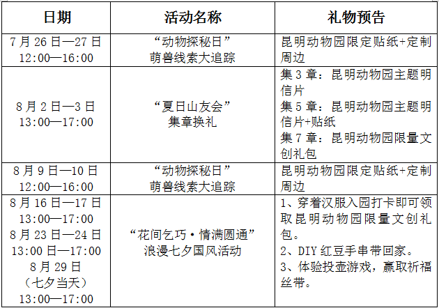 昆明动物园暑期活动日程表