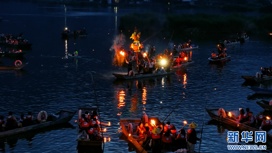 大理洱源,人们在湖上体验火把节乐趣(7月19日摄)。新华网发(马雯 摄)