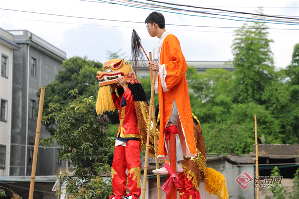 通海县四街镇大营村高跷舞狮 杨语嫣 摄