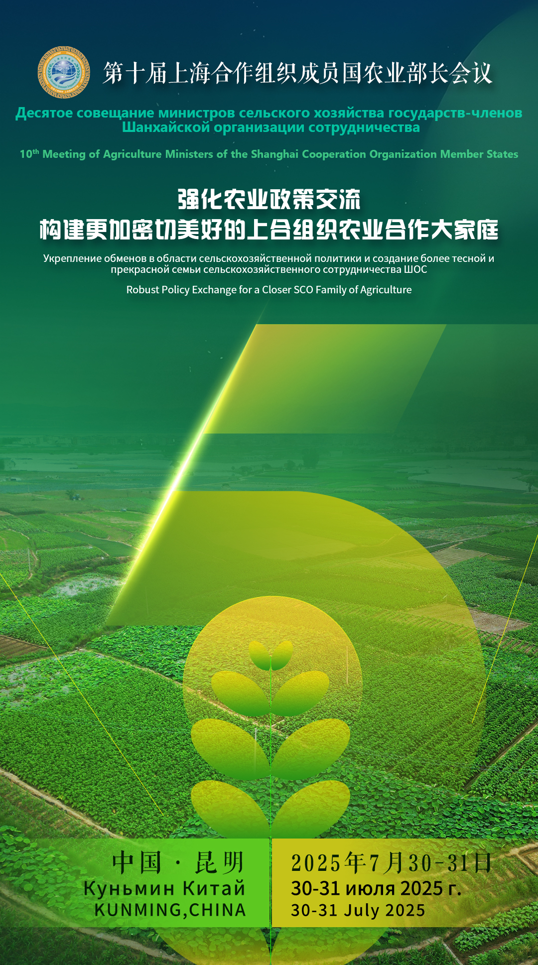 第十届上海合作组织成员国农业部长会议将于2025年7月30至31日在昆明召开,本次会议以“强化农业政策交流 构建更加密切美好的上合组织农业合作大家庭”为主题,从今天起,让我们一起倒计时,共同期待见证这场重要会议的到来。