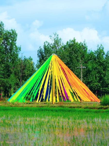 与此同时,福保半岛生态农田区完成艺术化蜕变,以“生产+生态+美学”三重价值重构田野空间。水稻预计8月中下旬呈现连绵稻浪景观,稻田区种植的彩色水稻,运用紫、红、绿三色拼绘出滇池西山“睡美人”样貌,打造大地艺术奇观。同步布局的向日葵花海与莲藕基地,将成为莲藕种植示范区和网红荷花主题旅游目的地。“白鹭鸶”装置、稻草人、“旅行鸥”雕塑、“彩虹糖”装置等点缀其间,提升了休闲趣味与停留体验,这种将农业生产、艺术表达与生态保护融合的创新实践,书写着福保独特的田野叙事诗。全新呈现的“小新西兰”草坪区,艺术装置与自然景观深度融合,巨型落日气模与竹编鱼群矩阵形成动态平衡。