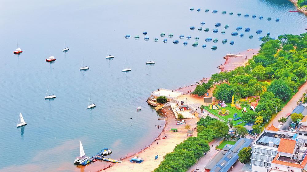 皮划艇、帆船迎着湖风扬起白帆。记者 王毅 摄