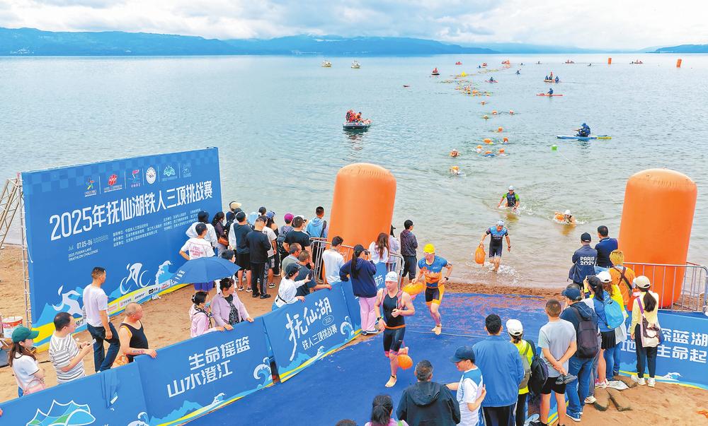 2025年抚仙湖铁人三项挑战赛现场。记者 王毅 摄