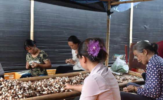 五合乡务工群众分拣姬松茸。通讯员 杨静莹 摄