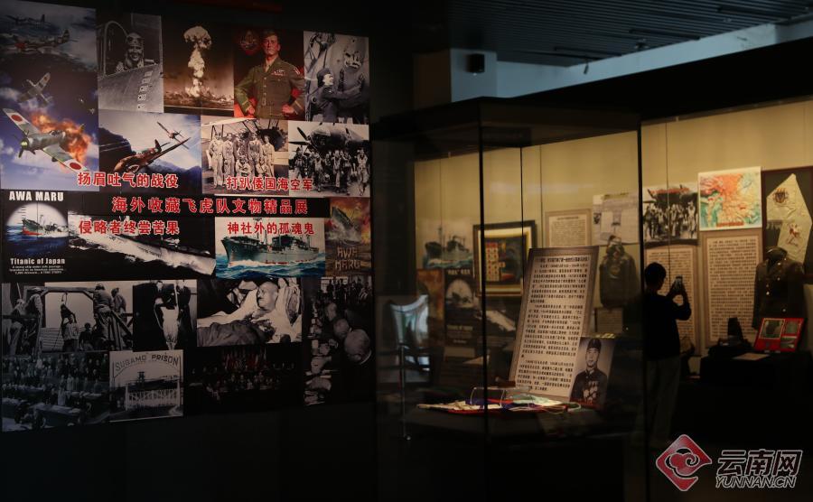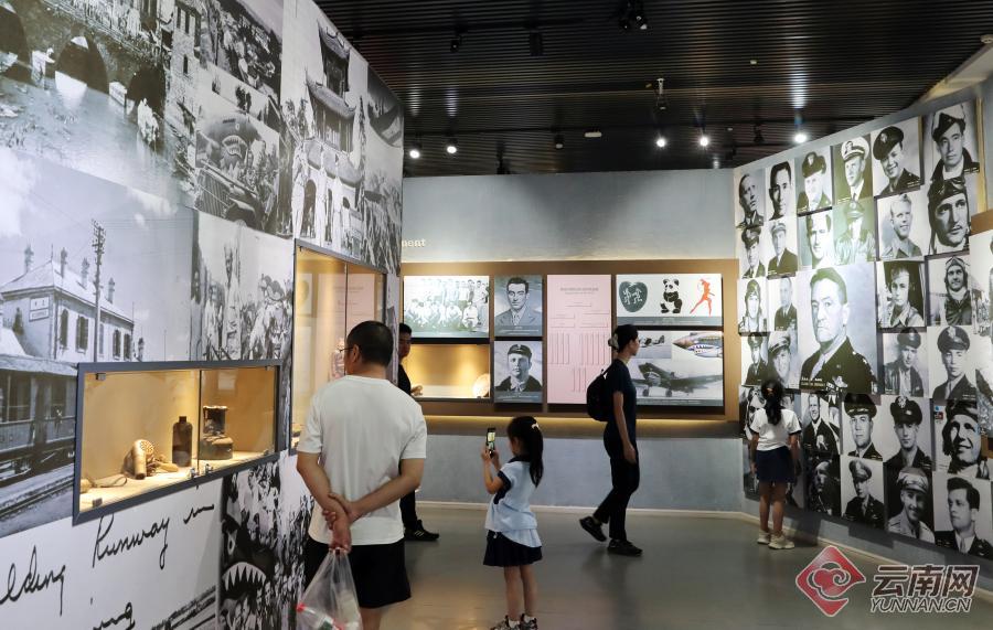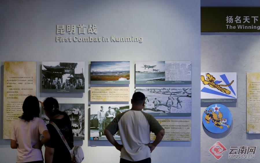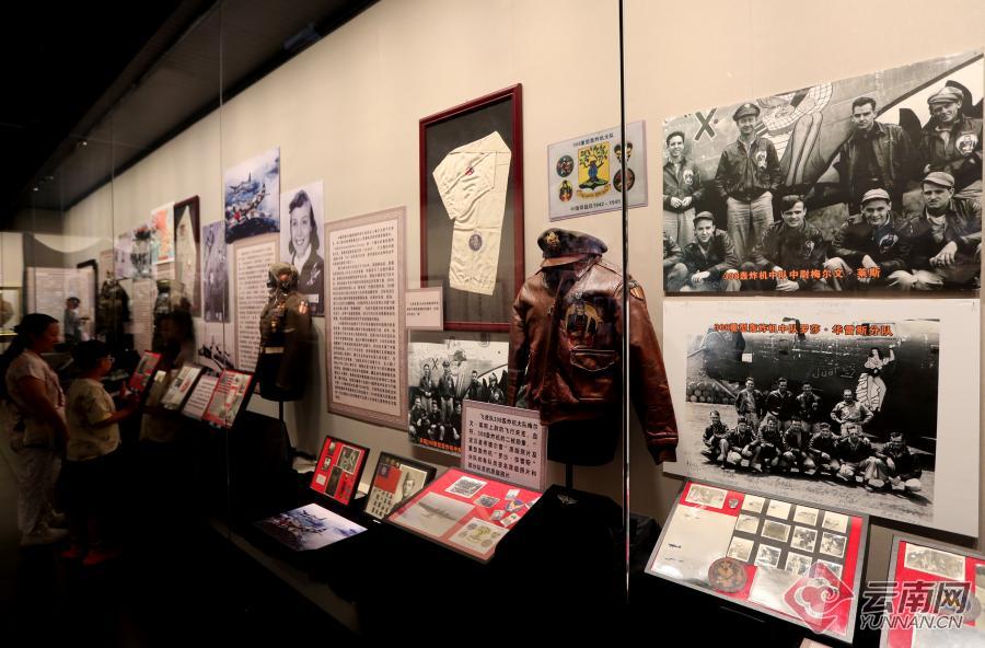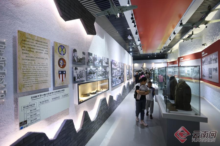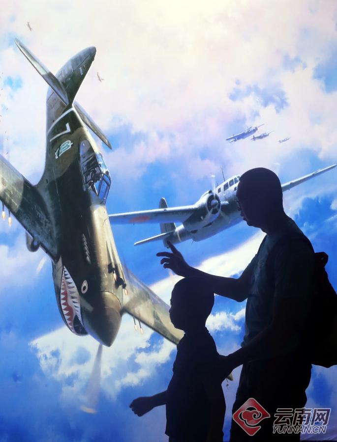 8月15日,市民游人在昆明市博物馆“长空飞虎——飞虎队文物展”常设展厅参观。不少家长带着孩子前来了解美国飞虎队援华血战长空的抗战历史。