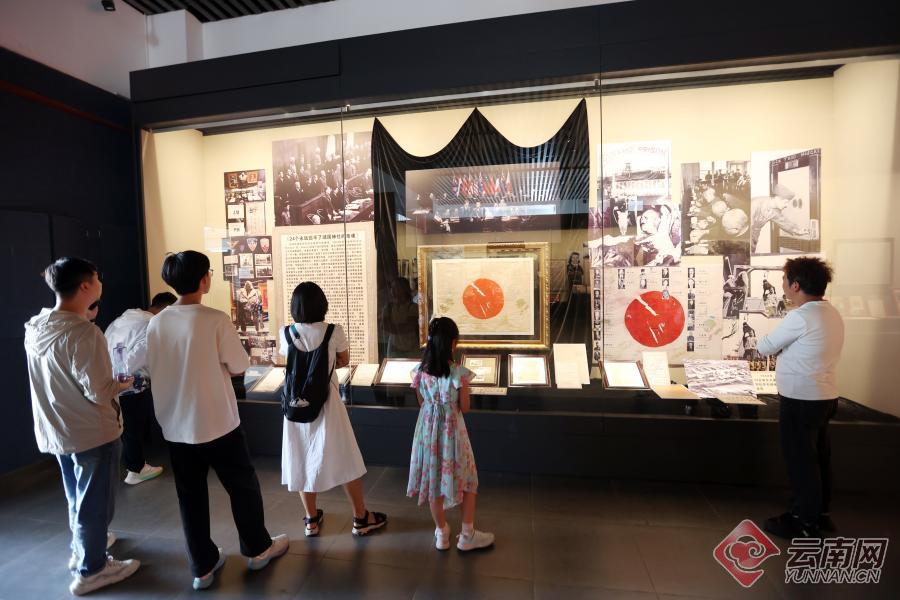 8月15日,市民游人在昆明市博物馆参观纪念中国人民抗日战争暨世界反法西斯战争胜利80周年飞虎队海外文物精品展。