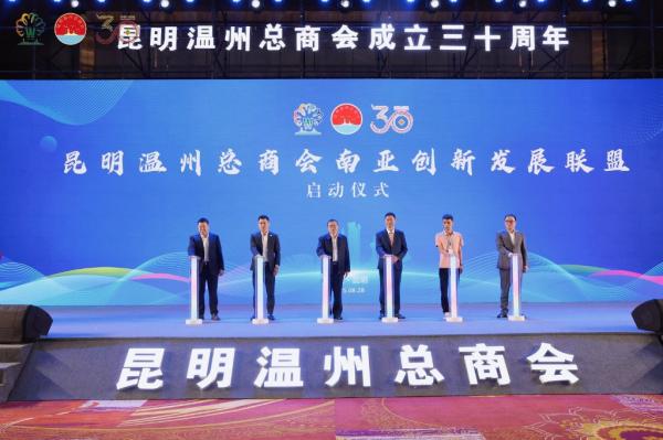 庆典上,温州市全国温州商会总会向昆明温州总商会颁发纪念牌匾与书法作品;昆明温州总商会“南亚创新发展联盟”正式启动,为温商深耕南亚东南亚市场搭建新平台;异地温州商会会长代表共同宣读了《昆明宣言》。