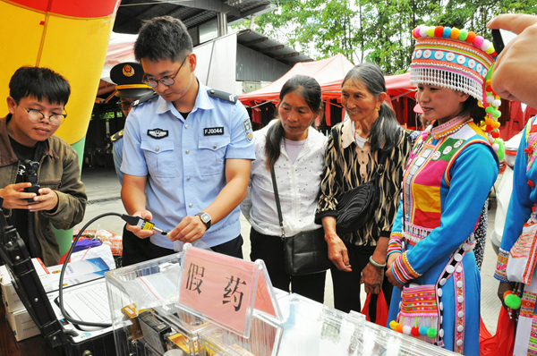 活动现场,假药展柜前排起长队,公安民警现场“开课”,手把手教大家辨别假药真伪、细数假冒药品危害,直观又深刻;市场监管趣味有奖问答环节人气爆棚,合理用药、药品储存等知识,在答题互动中轻松“get”。针对边境少数民族群众,执法人员耐心讲解,少数民族科普宣传员面对面翻译,有效打破了语言障碍,让少数民族群众也能听得懂。