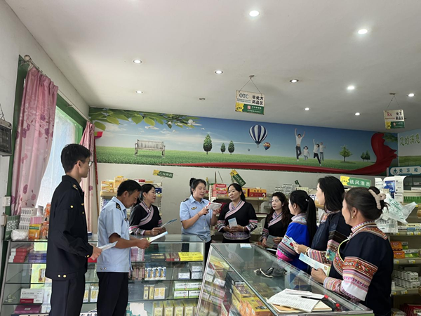 师宗县市场监督管理局、罗平县市场监督管理局、马龙区市场监督管理局、会泽县市场监督管理局深入多依河等景区和少数民族特色村寨及城乡接合部,开设“流动药监课堂”。结合民族风俗习惯与文化特点,因地制宜,讲解常见苗药、藏药与西药联合使用禁忌,发放安全用药手册,破解偏远地区用药信息壁垒,将药品安全理念植入多彩民族文化,共绘健康同心圆。