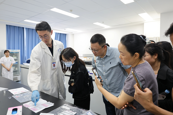 本次活动分为实验室参观、现场实验演示、座谈交流三个环节开展。参观者首先分组参观了电磁兼容实验室、无菌检测、诊断试剂实验室等,观摩医疗器械和药包材相关产品的检验流程,以及由工作人员现场演示的高分子材料类塑料瓶密封性、电气安全等综合实验演示,使参观者切实感受到检验工作的科学严谨。